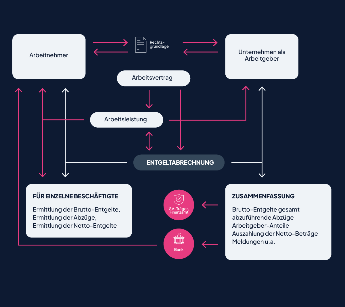 Basierend hierauf kennt die Entgeltabrechnung nun zwei Perspektiven oder Adressaten: das Unternehmen und die einzelnen Mitarbeiter. Mehr zu diesen Perspektiven im nachfolgenden Exkurs.